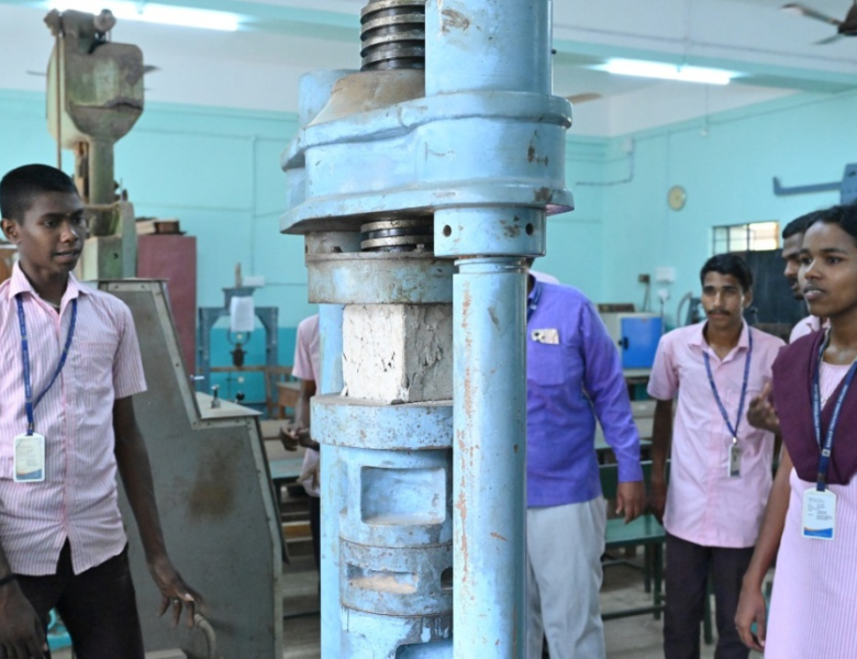 Determining the physical attributes of building materials such as cement, steel, wood, fine and coarse aggregate, and the strength of fresh concrete is the aim of the MT lab