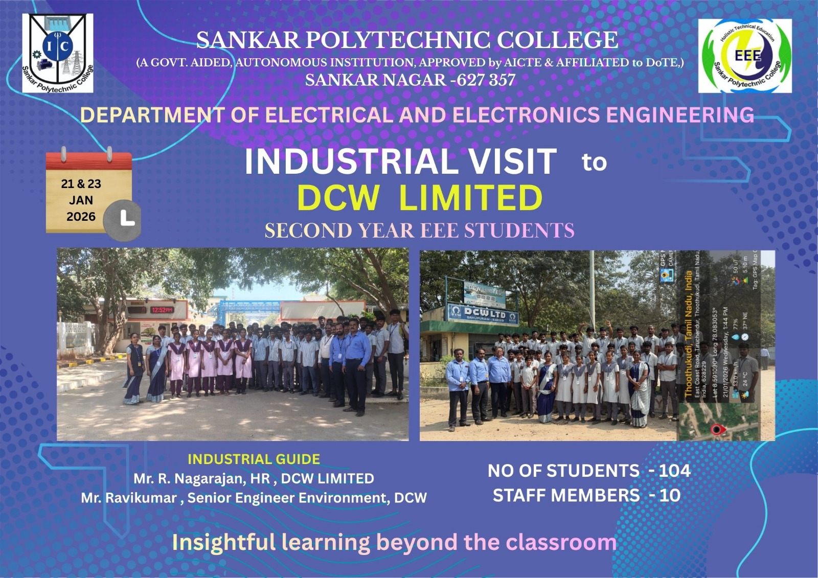 Our Second Year Electrical & Electronics Engineering students gained invaluable industry exposure during their visit to DCW Limited on January 21 & 23, 2026! ⚡